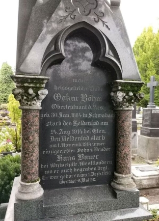 Vornamen: Hans Michael; vermisst, verheiratet, Schreinermeister; gestorben infolge Kriegsverwundung; vermutlich als unbekannter Soldat auf die Kriegsgräberstätte Langemark (Belgien) überführt worden. |