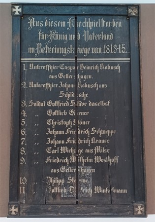 Zusätzlich eine Holztafel für die Gefallenen des Krieges 1813 bis 1815.