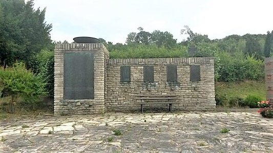 Ehrenmal vor dem Friedhof (1870/71), im Friedhof Gefallenendenkmal (Weltkriege) und Gedenkstein.