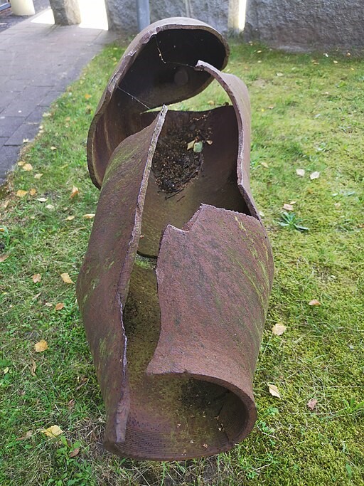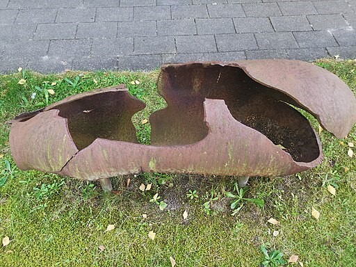 Am Bahnhof von Bad Oldesloe befindet sich eine zum Teil explodierte Fliegerbombe als Mahnmal.