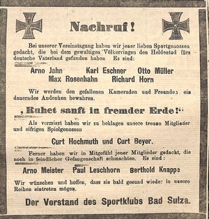 gedacht, die bei dem gewaltigen Völkerringen den Heldentod fürs