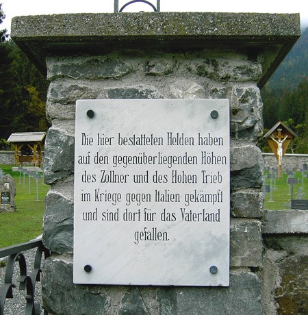 und 17 unbekannte Kameraden, welche hier am Zollner und Hohen Trieb gefallen sind.