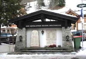 Beim Pfarrhof freistehende, überdachte Gedenkwand.