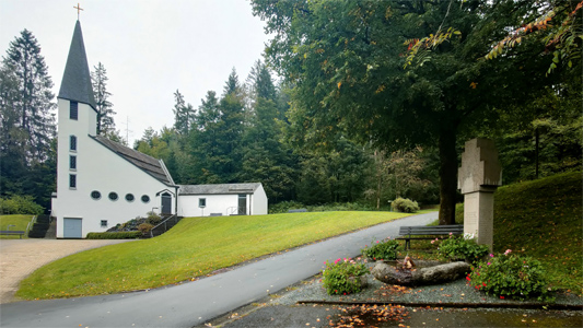 Denkmal für den 2. Weltkrieg bei der 1968 erbauten Christuskirche.
