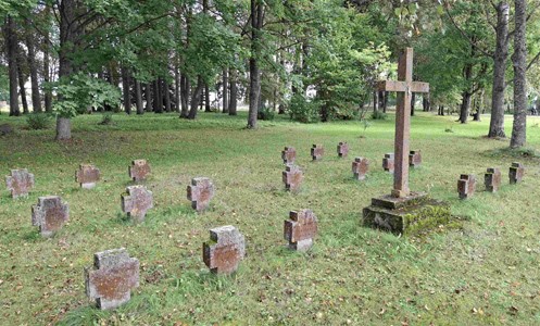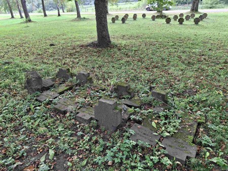 Von deren Grabkreuzen sind nur noch 19 komplette Kreuze erhalten, die zusammen auf einer kleinen Fläche aufgestellt wurden,