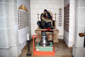 Zweiter Weltkrieg mit Fotos, vor dem Altar Glocke und Informationsblatt zur Glocke.