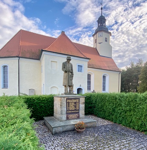 An der Vorderseite sind Tafeln für beide Weltkriege angebracht (1. Weltkrieg mit Namen).