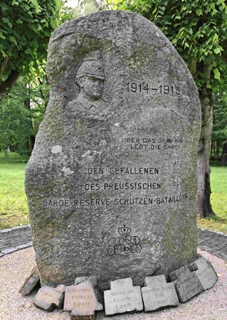 Gardeschützen-Bataillon steht (großer Felsblock mit Relief eines Soldatenkopfes).