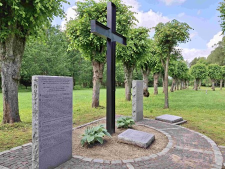 Hochkreuz zwei senkreichte Granitplatten mit den Namen aufgestellt.
