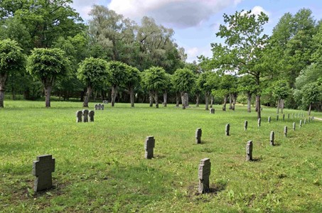 Kriegsgräberstätte für Gefallene des Ersten und Zweiten Weltkriegs im Südosten der Stadt neben dem Friedhof der Altgläubigen