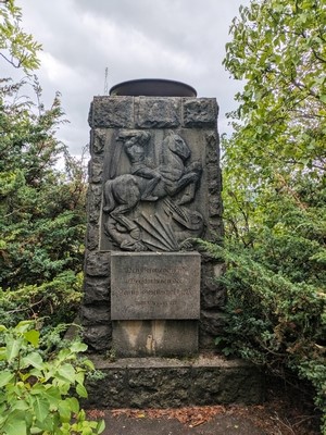 Anmerkung: Der Obelisk des Ehrenmals ist mit einer Feuerschale versehen. Dies krönt ihn als oberer Abschluss.