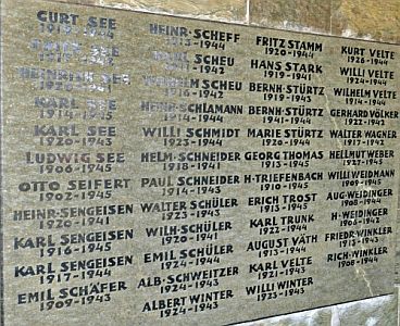 | Gefreiter | VELTE | Karl | 31.03.1921 | 1943 12.1942 Stalingrad | vermisst Soldatenfriedhof in Rossoschka, Name ist auf dem Würfel 96, Platte 4 verzeichnet | |