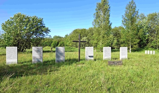 Seitlich wurden vier Stelen aufgestellt, die an die in Kukruse bestatteten Soldaten erinnern (separater Beitrag).