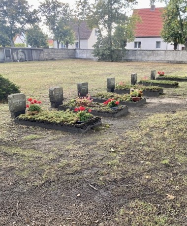 Kriegsgräber aus dem Zweiten Weltkrieg für vier namentlich bekannte und mehrere unbekannte Soldaten.