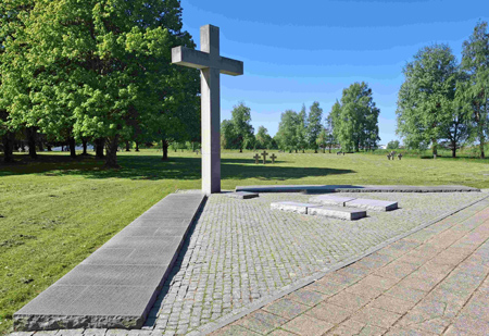 und den Resten eines sowjetischen Ehrenmals befinden sich Flächen mit Symbolkreuz-Gruppen und einem