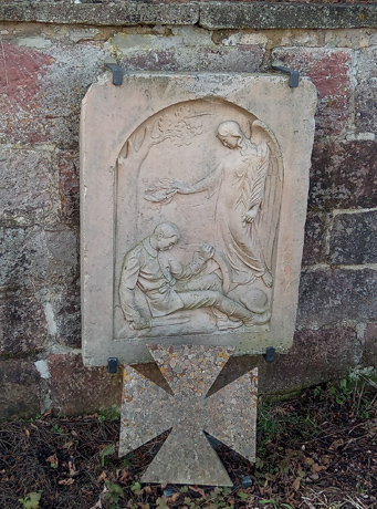 Relief - Darstellung eines Gefallenen, dem ein Engel einen Lorbeerkranz aufsetzen will