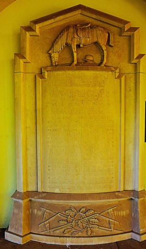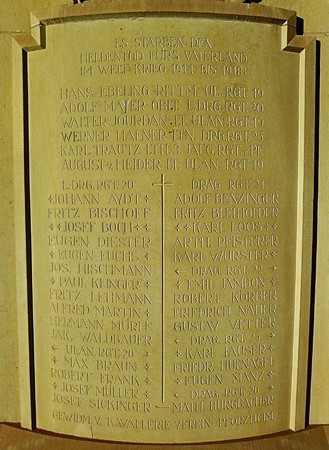Wanddenkmal aus gelbem und rotem Sandstein für die Gefallenen des Kavallerie-Vereins Pforzheim.