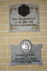 In der Lorettokapelle zwei Gedenktafeln an der Wand, untere Tafel mit Fotos und Namen.