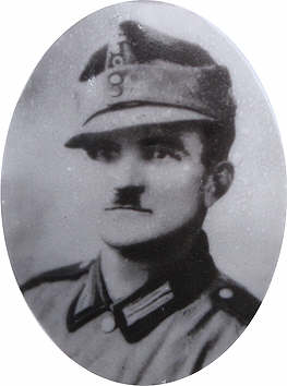 Gedenkkapelle in der Kirche (separater Eingang). Auf einem Quader steht eine Holzstatue „Ritter im Kampf mit Lindwurm“, Inschriften auf drei Seiten,