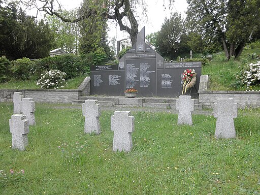 Großes dreiteiliges Denkmal auf dem Bergfriedhof für Gefallene und Bombenopfer,