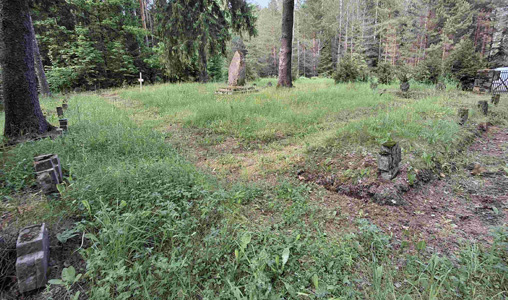 Kriegsgräberstätte für Gefallene des 1. Weltkriegs weit östlich von Cena in einem Waldgebiet.