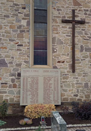 An der Kirche St. Leonhard ist an der Außenwand eine Gedenkplatte angebracht.
