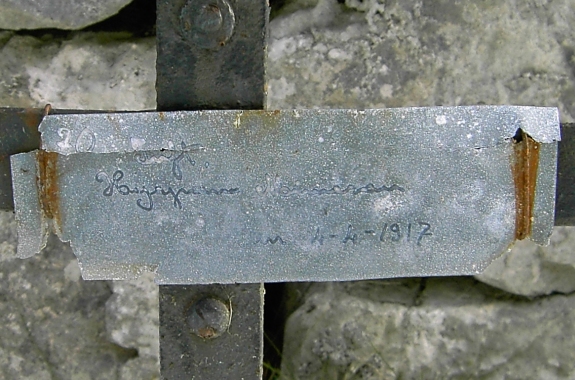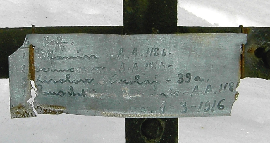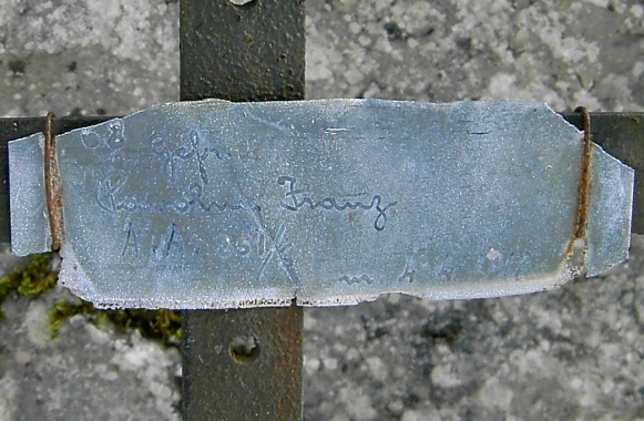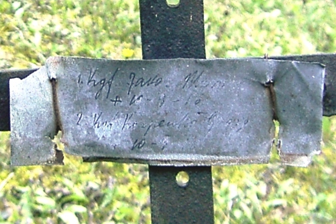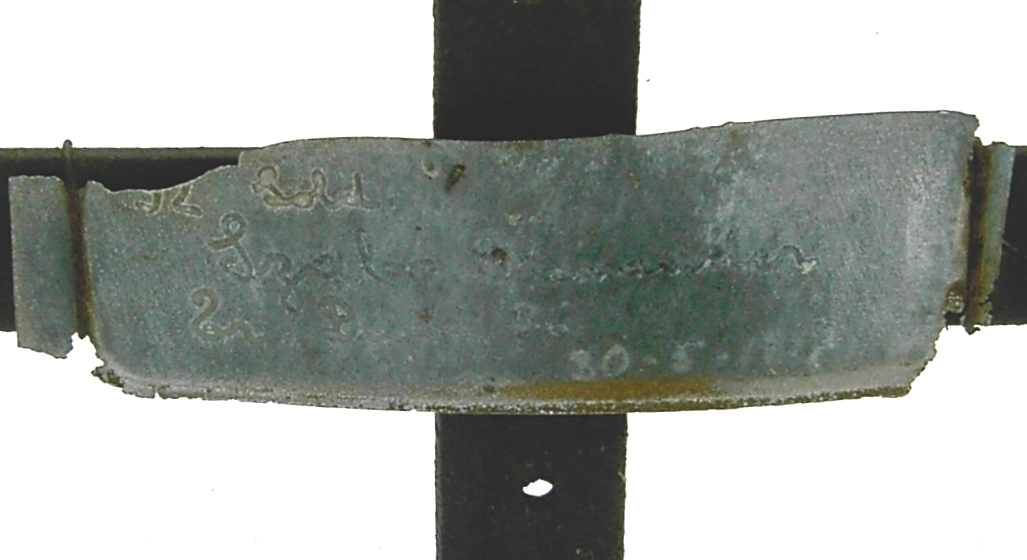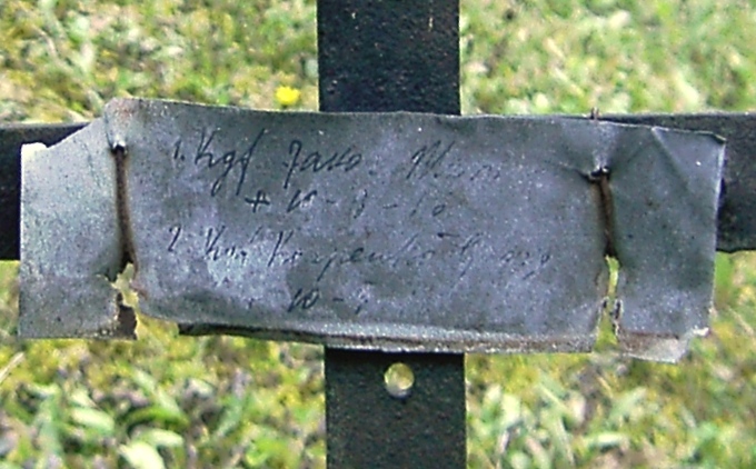 35 Grabkreuze mit handschriftlichen Alu-Täfelchen (schwierig zu lesen) sind noch erhalten, auf denen 40 Namen zu finden sind.