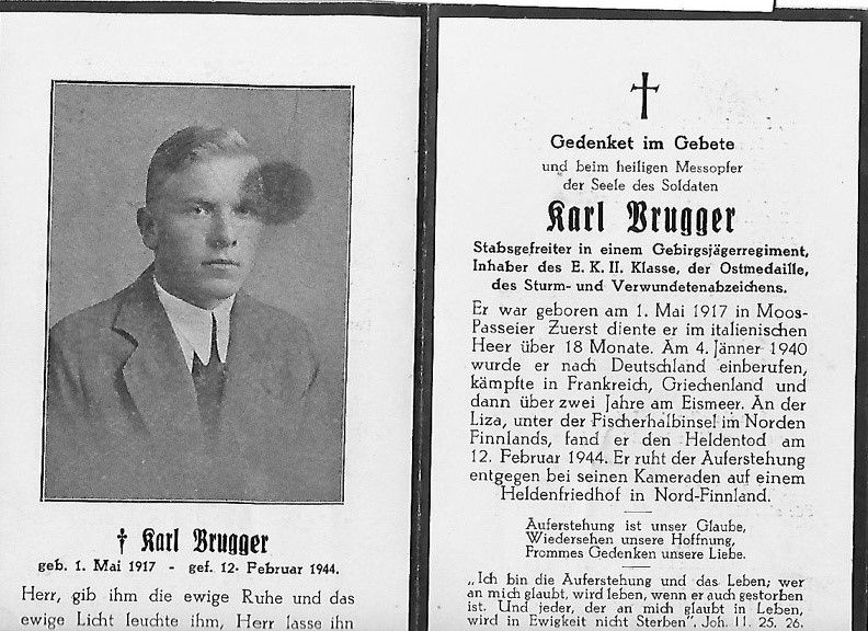 | Stabsgefreiter | BRUGGER | Karl | 01.05.1917 Moos in Passeier |