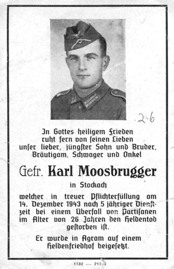 | Gefreiter | MOOSBRUGGER | Karl | 04.11.1917 Stockach, Bach |