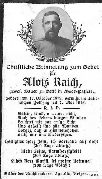 | RAICH | Alois | 12.10.1873 | 01.05.1916 ital. Feldzug |