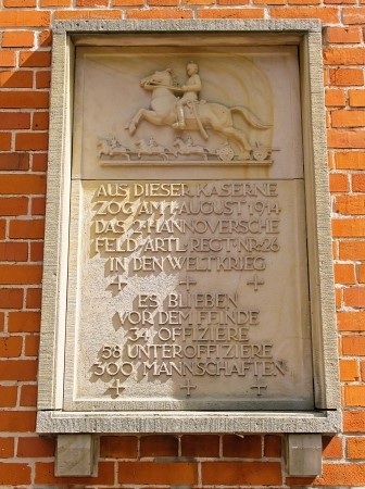 AUS DIESER KASERNE ZOG AM 1. AUGUST 1914 DAS 2. HANNOVERSCHE FELD. ARTL. REGT. NR. 26 IN DEN WELTKRIEG