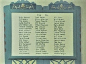 hängen zwei Tafeln für die Gefallenen beider Weltkriege.