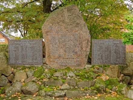 und ein Gedenkstein aus dem Jahr 1913, u.a. zum Gedenken an die Befreiungskriege vorhanden.