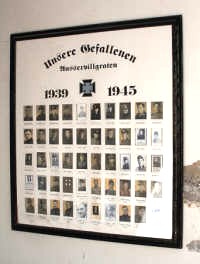 Gedenktafel an der Friedhofskapelle mit Namen und Fotos.