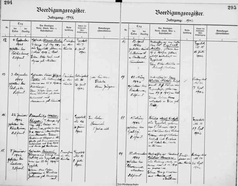 | Gefreiter | PEPER | Jürgen | 25.04.1910 Osterbünge | 03.12.1941 Pustyeke, Ostfront |