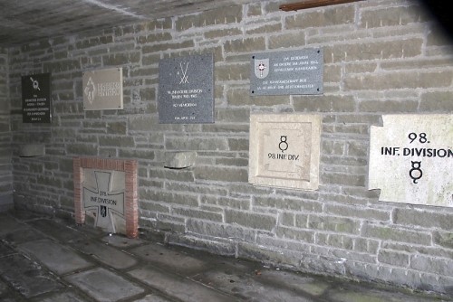 In dieser Gruft befinden sich am Boden und den Wänden Tafeln bzw. Steine von den diversen Truppeneinheiten (alle ohne Namen) sowie eine Tafel mit Namen.