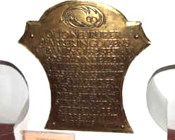 In der Kirche Marmorstein in Form eines flachen Kelches mit Kupfertafel, darüber Gedenktafel mit Foto und Text.