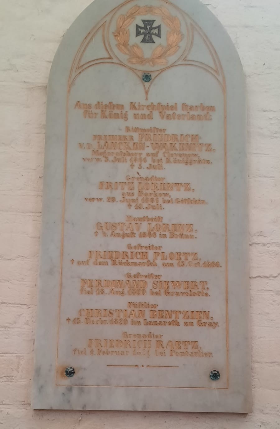 | Grenadier | LORENTZ | Fritz | 13.06.1866 | aus Barkow; verw. 28(?).Juni 1866 bei Gitschin |