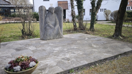 In Haar bei München steht vor der Kirche St. Konrad ein Denkmal für die Opfer von Euthanasie, Krieg,