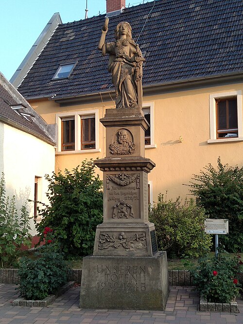 Krieges von 1870/71 aufgestellt. Nach den beiden Weltkriegen ergänzte man es um Gedenktafeln mit den Namen der gefallenen Soldaten.