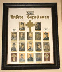 In der Kirche Gedenktafel mit Namen und Fotos (Zweiter Weltkrieg).