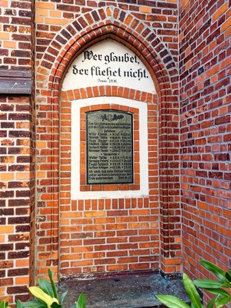 In die Wand links neben dem Eingang der Christus-Kirche in Lachendorf (Kirchstraße) ist eine Steintafel