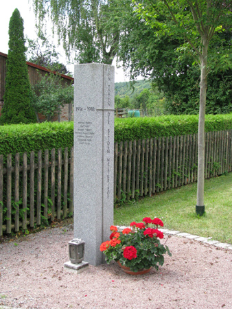 In die Seitenflächen sind die Namen der Gefallenen und Vermissten beider Weltkriege eingeschlagen.
