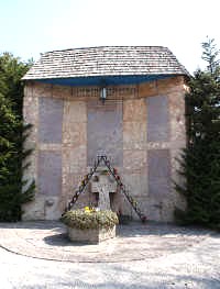 Im Stadtteil Morzg bei in der Kirche angewinkelte, überdachte Gedenkwand.
