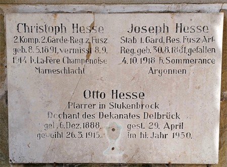 Denkmal vor einem Hof für die Familie Hesse mit zwei gefallenen Brüdern und für Otto Hesse,