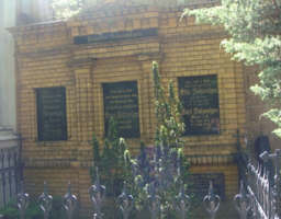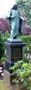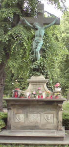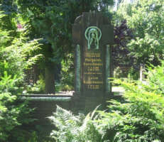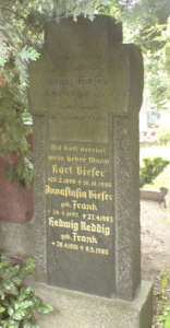 Familiengrab; „Hier ruht in Gott unser einziger, geliebter Sohn - cand. phil., Inh. d. Eisernen Kreuzes, am 10.11.1916 schwer verwundet vor Le Sars (Frankreich); Erhaben und ehrenvoll ist es, für das Vaterland zu sterben“ |