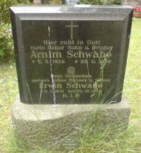 Familienstein an der Anlage 2; „Es starben für Deutschland unsere letzten Söhne und Brüder. Im Kampfe gefallen - beweint von allen gingt Ihr zur ewigen Ruh!“ |