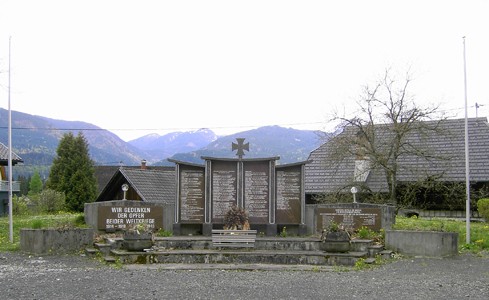 Auf einer Tafel wird den zivilen Bombenopfern von Nötsch im Jahre 1944 gedacht.