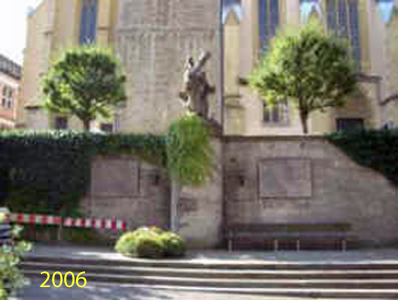 Vor der Umgestaltung des Platzes waren auf der Mauer rechts und links davon zwei Tafeln angebracht für