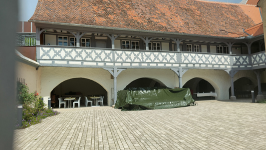 den Boxeraufstand sowie des 1. Weltkriegs auf der Innenseite des Ehrenhofs neben dem Spital untergebracht.